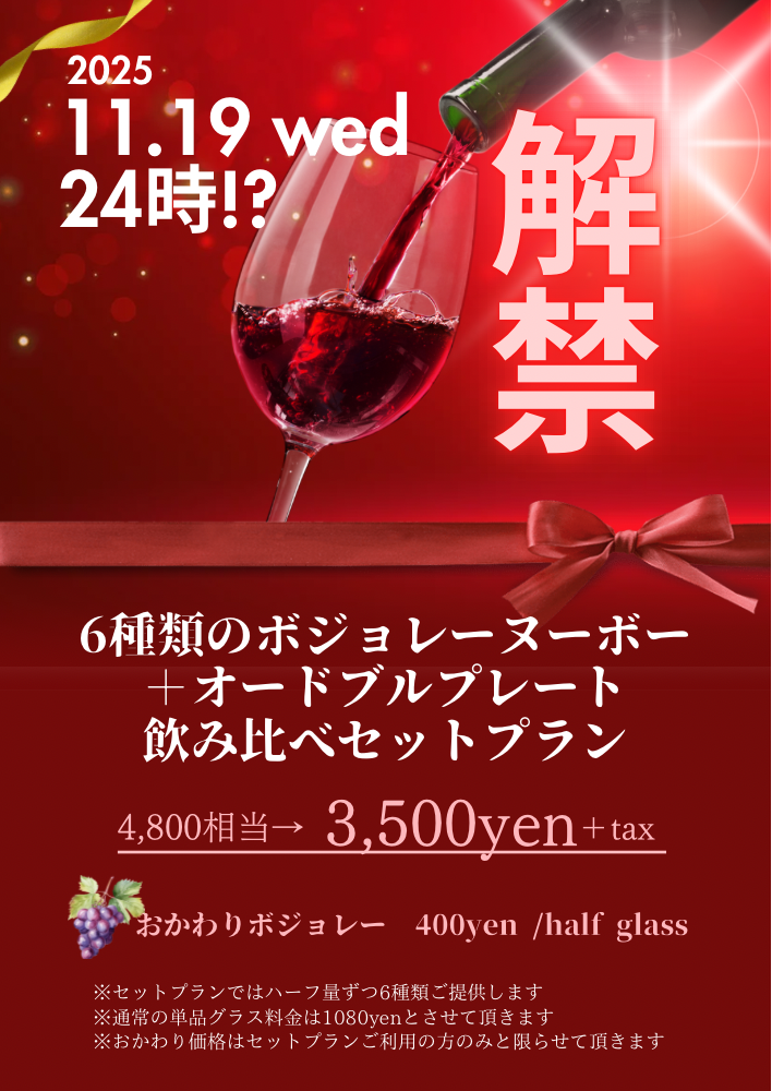 世の中は11/20(木)0時にに解禁するボジョレーヌーヴォですが、